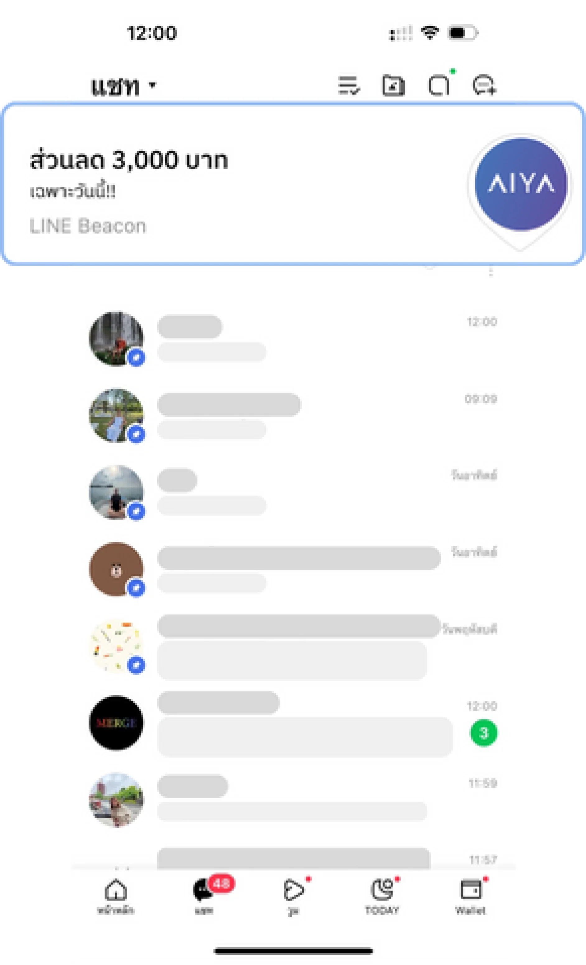 ผู้ใช้เห็นแบนเนอร์แคมเปญบนหน้า Chat List ของ LINE
