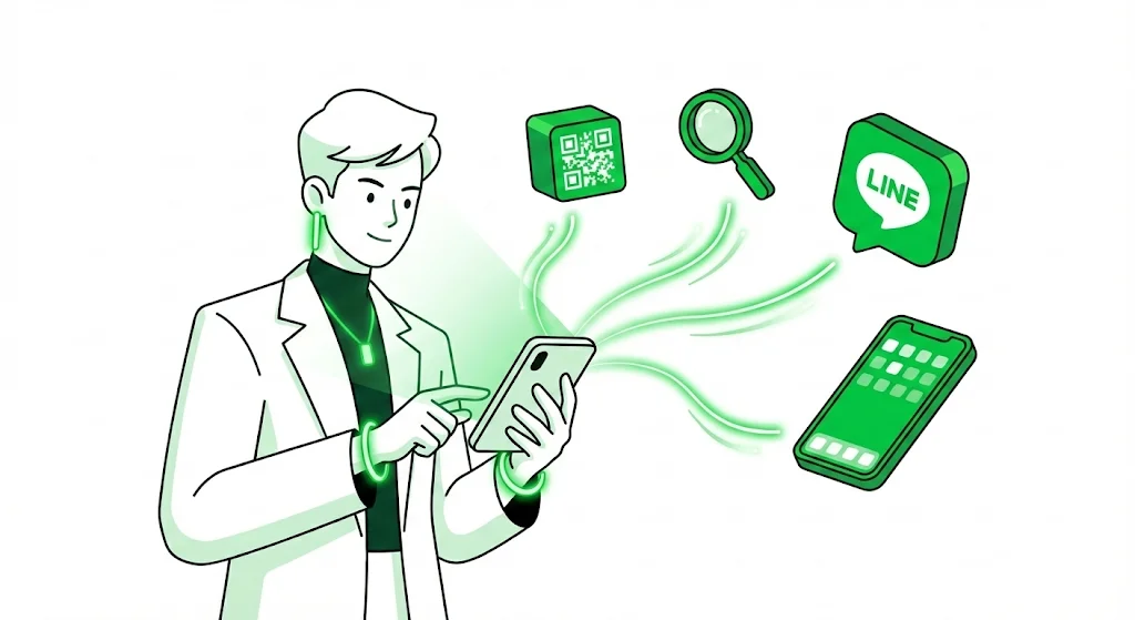 เปิดใช้งานได้จาก LINE Official Account, ไอคอนบนหน้าจอ LINE, ค้นหาใน LINE หรือสแกน QR Code